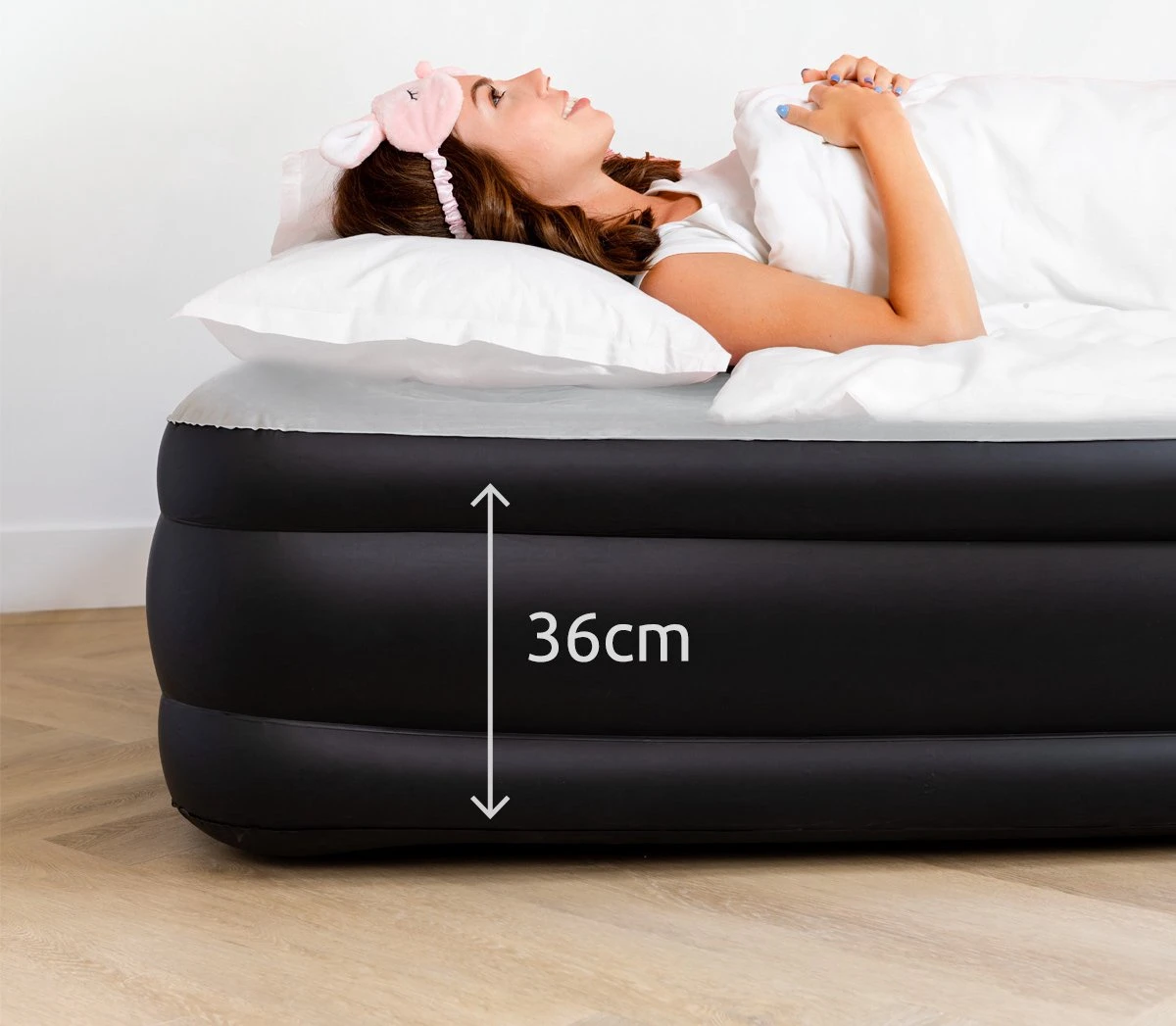 Het luchtbed heeft een zachte bovenkant van grijs velours en een verhoging van 36 cm, zodat u er ‘s nachts niet af kunt rollen en het aanvoelt als een echt bed. Dankzij de naadloze lastechniek en kwalitatieve dikke materiaal is het bed volledig luchtdicht, lekbestendig, waterafstotend en bestand tegen beschadigingen. Bovendien zorgt de antislip onderkant voor extra stevigheid.