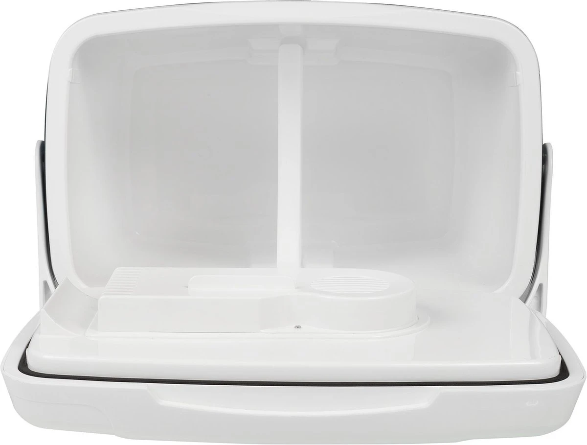 Vul de koelbox op de avond voor vertrek en sluit hem aan op het lichtnet met de 230V stekker. Stap in de auto en sluit hem aan op sigarettenaansteker om de dranken en etenswaren ook tijdens de reis gekoeld te houden. Eenmaal aangekomen op het strand of in het park sluit je de koelbox eenvoudig aan op een powerbank (niet meegeleverd) met de USB-stekker. Zo ben je altijd, waar dan ook, voorzien van koude dranken. Daarnaast wordt er een compartimentverdeler meegeleverd die tegelijk functioneert als vrieselement om de producten extra koel te houden.