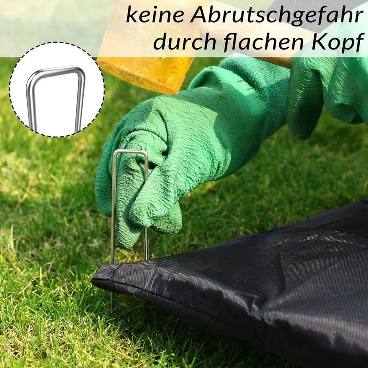 De stevige stalen haringen zijn geschikt voor normale grond (bos en weide) en kunnen eenvoudig met de hand in de grond gedrukt worden.