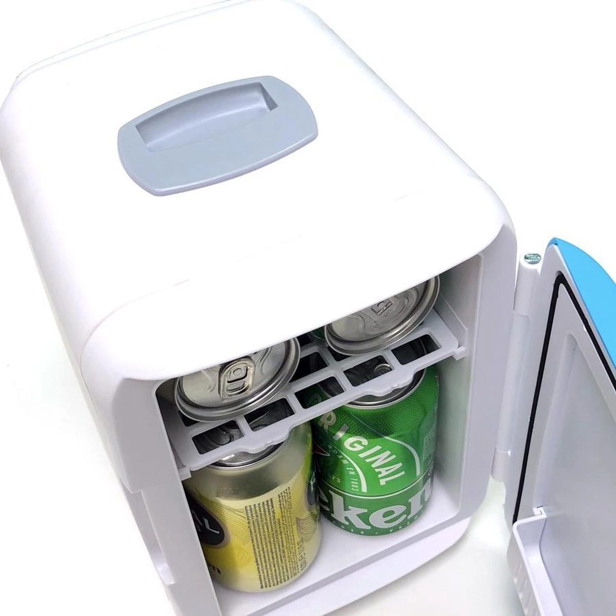 Al je favoriete dranken koel met deze trendy mini koelkast! Dankzij het compacte formaat is deze koelkast zeer geschikt voor in de auto, vrachtwagen of camper. De koelkast kan zes blikjes bevatten en wordt geleverd met een 12 V kabel.