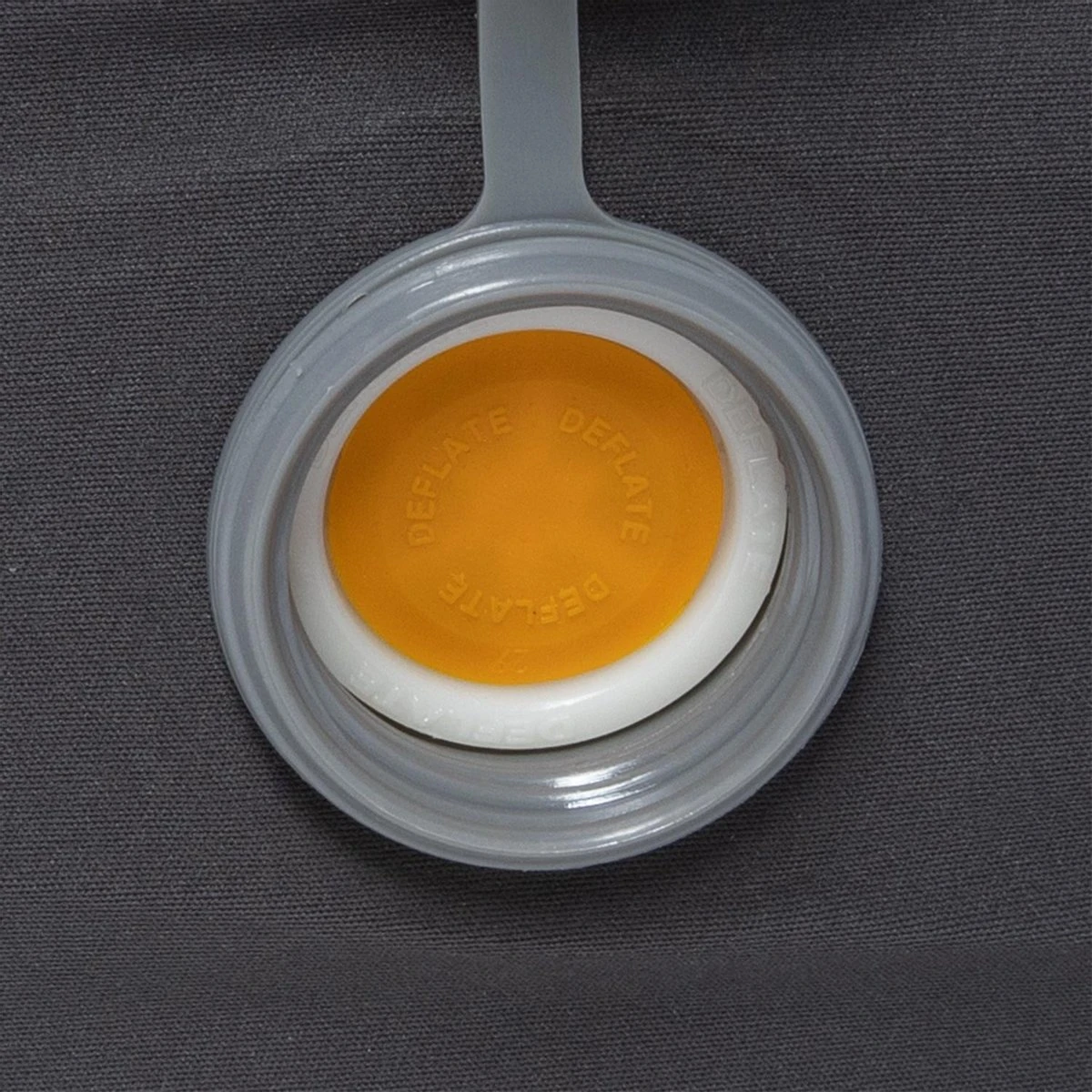 Deze mat heeft een handig groot ventiel waarmee je de mat zowel opblaast als leeg laat lopen. Het ventiel heeft 3 standen: dicht, halfopen of open. De éénwegsfunctie van het ventiel zorgt ervoor dat de lucht bij het opblazen binnen blijft en bij het leeg laten lopen buiten blijft. Je draait ‘m gemakkelijk met je vinger naar de gewenste stand.