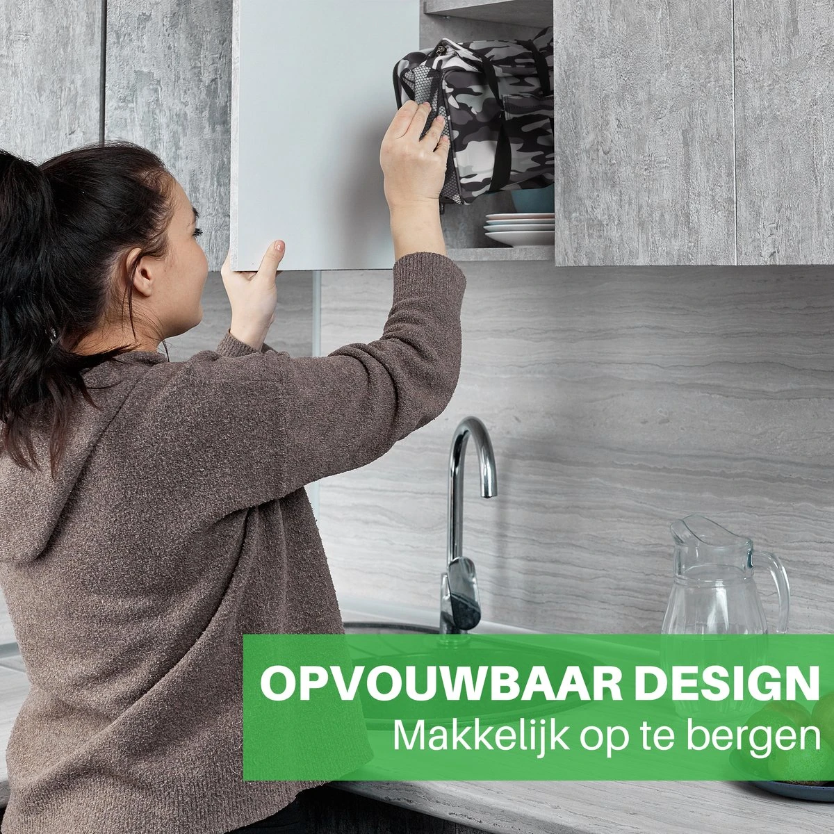 OPBERGEN: Opvouwbare tas met een hoogte van 7 cm, waardoor u de tas gemakkelijk kunt opbergen.