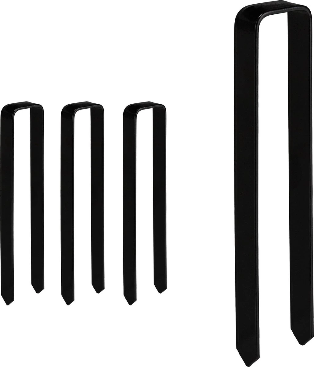 Gebruik de 4 grote grondankers om je rozenboog of plantensteun vast te zetten in de grond. Plaats de ankers over het frame van de plantensteun en sla de u-vormige haring met behulp van een rubberen hamer de grond in. De metalen haringen hebben lengte van 30 cm en kunnen dus diep de grond in worden geslagen. Dit zorgt ervoor dat je rozenboog ook als het waait stevig staat. De robuuste grondpennen zijn gemaakt van staal met poedercoating.