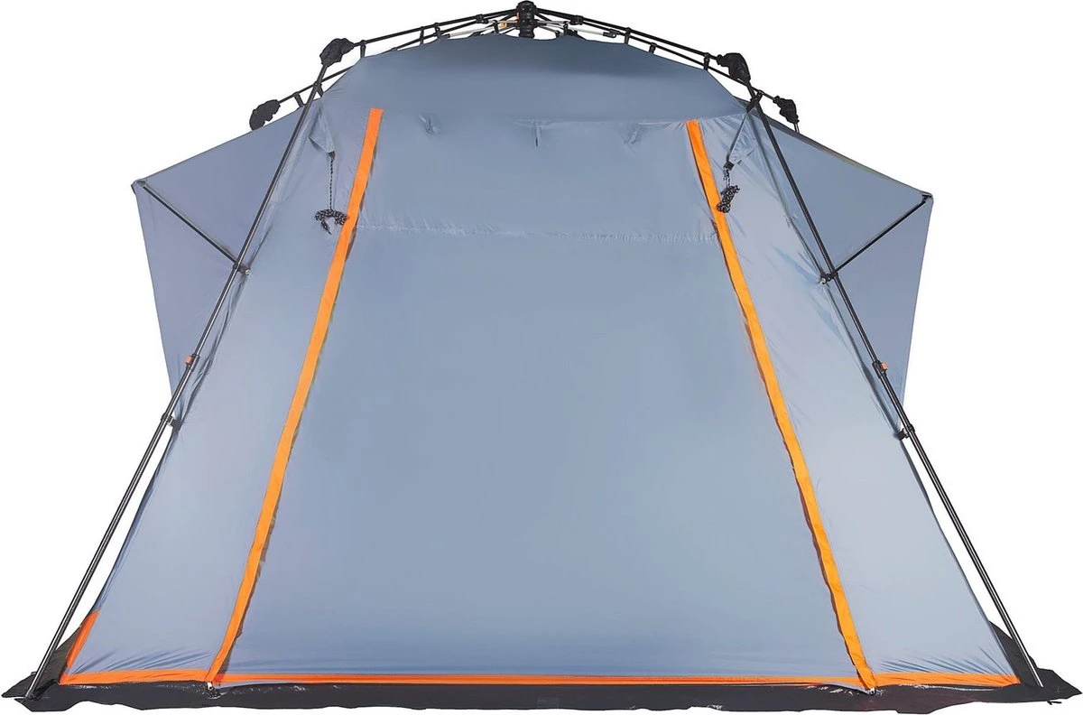 Innovatief vouwsysteem, ultrasnel Quick Up-opbouwen: dankzij het slimme opbouwsysteem kan de tent in een paar stappen snel en gemakkelijk opgezet en net zo snel weer afgebroken worden. Heel gemakkelijk, ook als u het nog nooit hebt gedaan. U hoeft alleen aan het veiligheidskoord te trekken, de tentstokken uit te vouwen en tenslotte met de bijbehorende haringen de tent vast te zetten – de tijdrovende ouderwetse manier is verleden tijd.